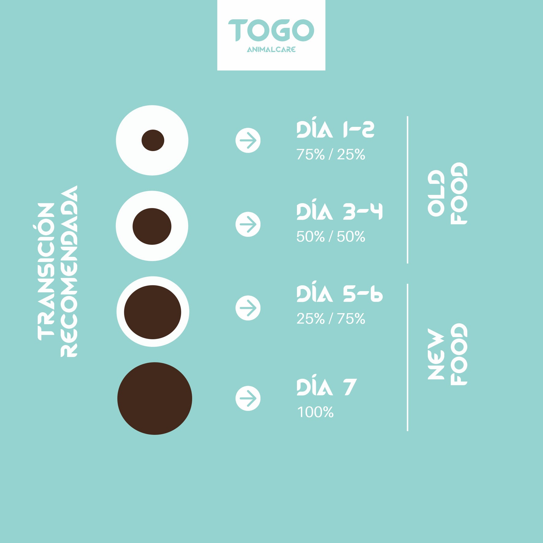 - Introduce gradualmente durante 7-10 días si cambias de alimento
